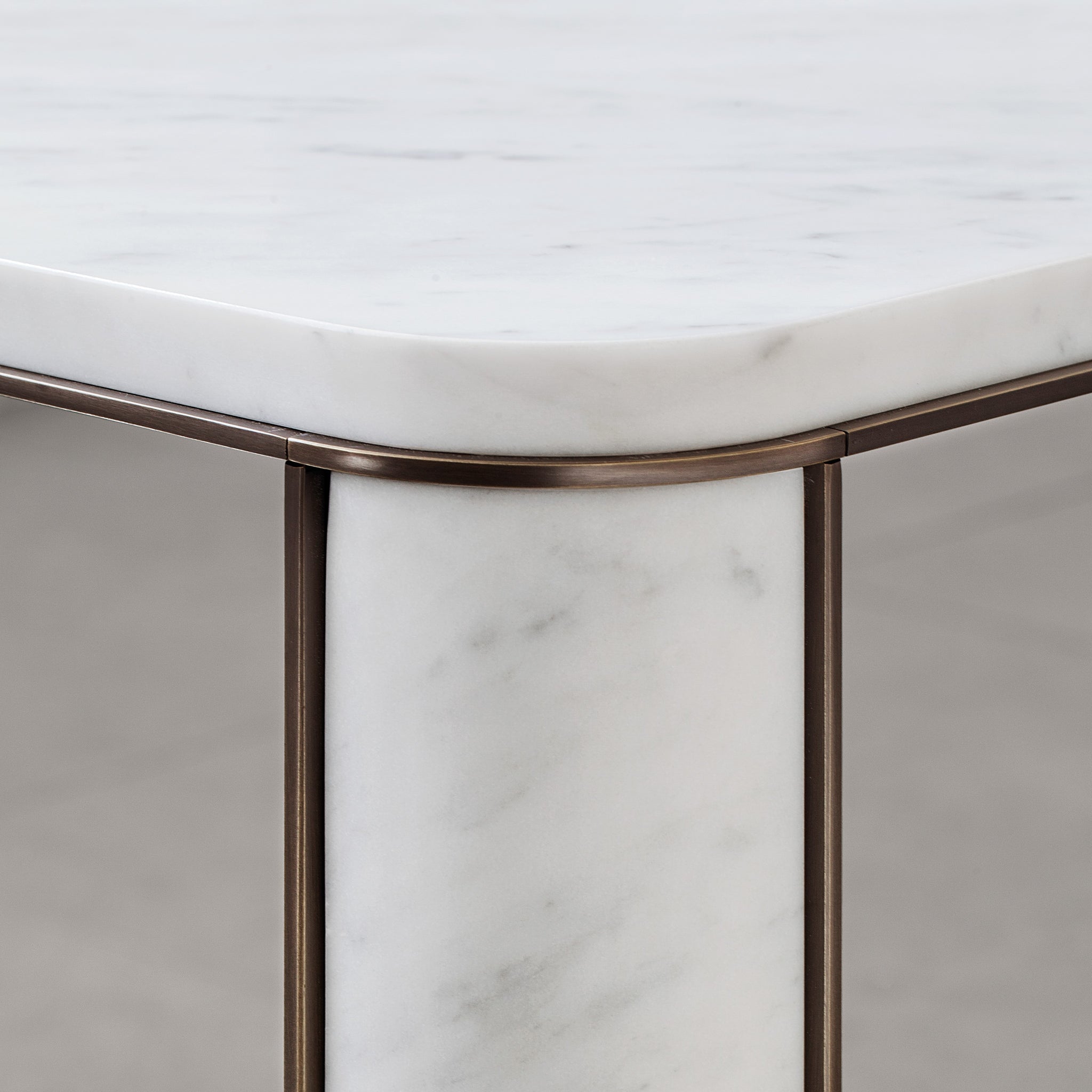 A timeless design for a dining table. Made with classic materials, custom made dimensions, available in three shapes: rectangular, square and round, the natural materials of Gregorio table make any place luxurious and unique; perfectly suitable as a conference table or a precious dining table